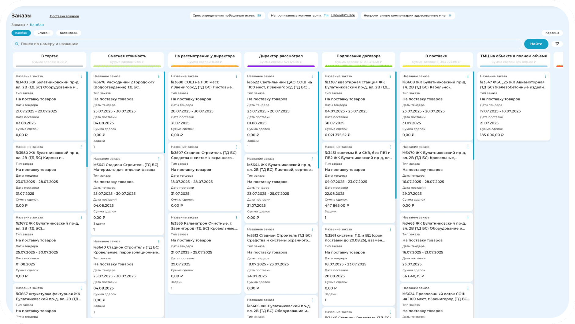 На этапе «Согласование» компания может добавить неограниченное количество дополнительных статусов, через которые будут проходить заказы, прежде чем попасть в «Торги».