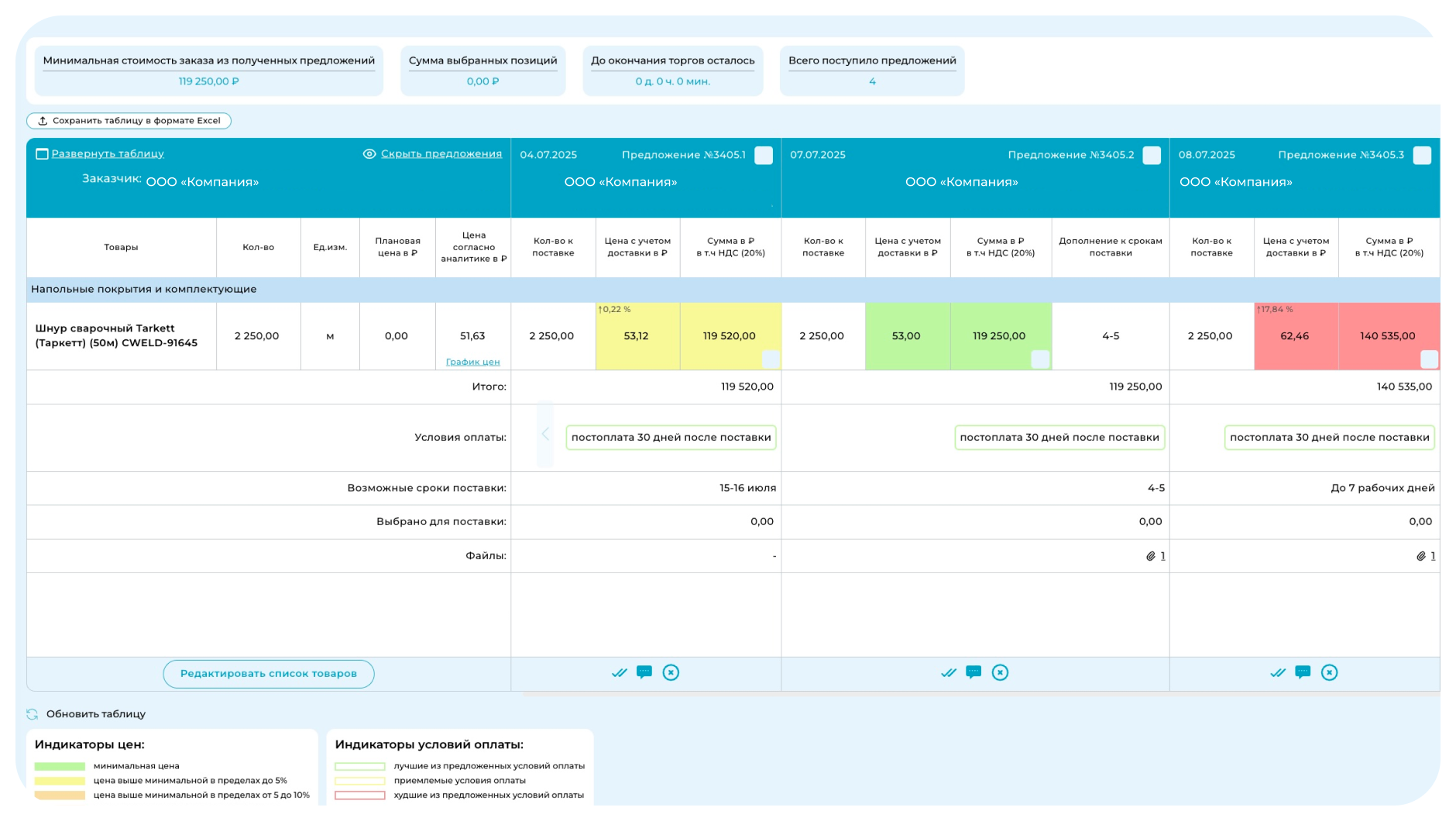 После публикации тендера ожидайте коммерческие предложения от Поставщиков (Подрядчиков) и заключайте сделки.