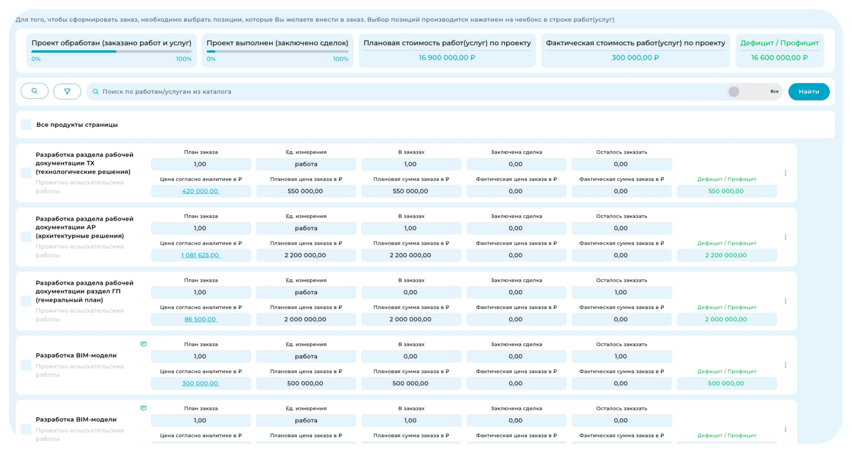 Шаг 8. С помощью Поиска добавьте в заказ: